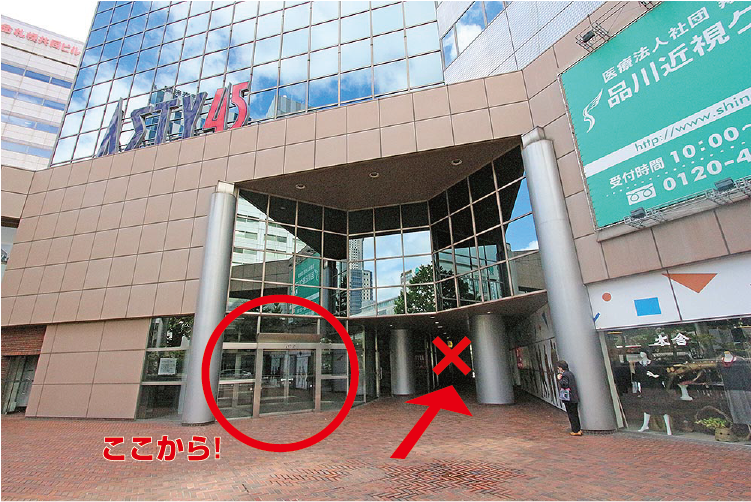 大丸側の角がメイン入り口ですが、洋服屋さんとか食べ物屋さんのある1Fフロアにまっすぐ入らず、入り口左のエントランスに入って下さい。