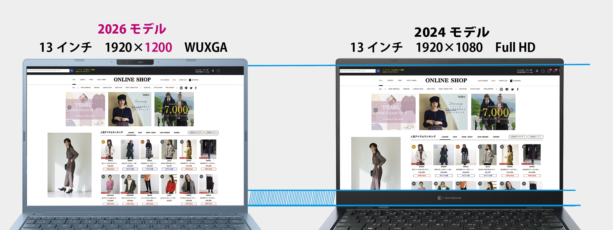 13インチノートPCで一般的だったフルHD(1920×1080)ではなく、縦方向を伸ばしたWQXGA(1920×1200)ディスプレイを採用し、コンパクトでもフルHDより作業効率の良い環境です。