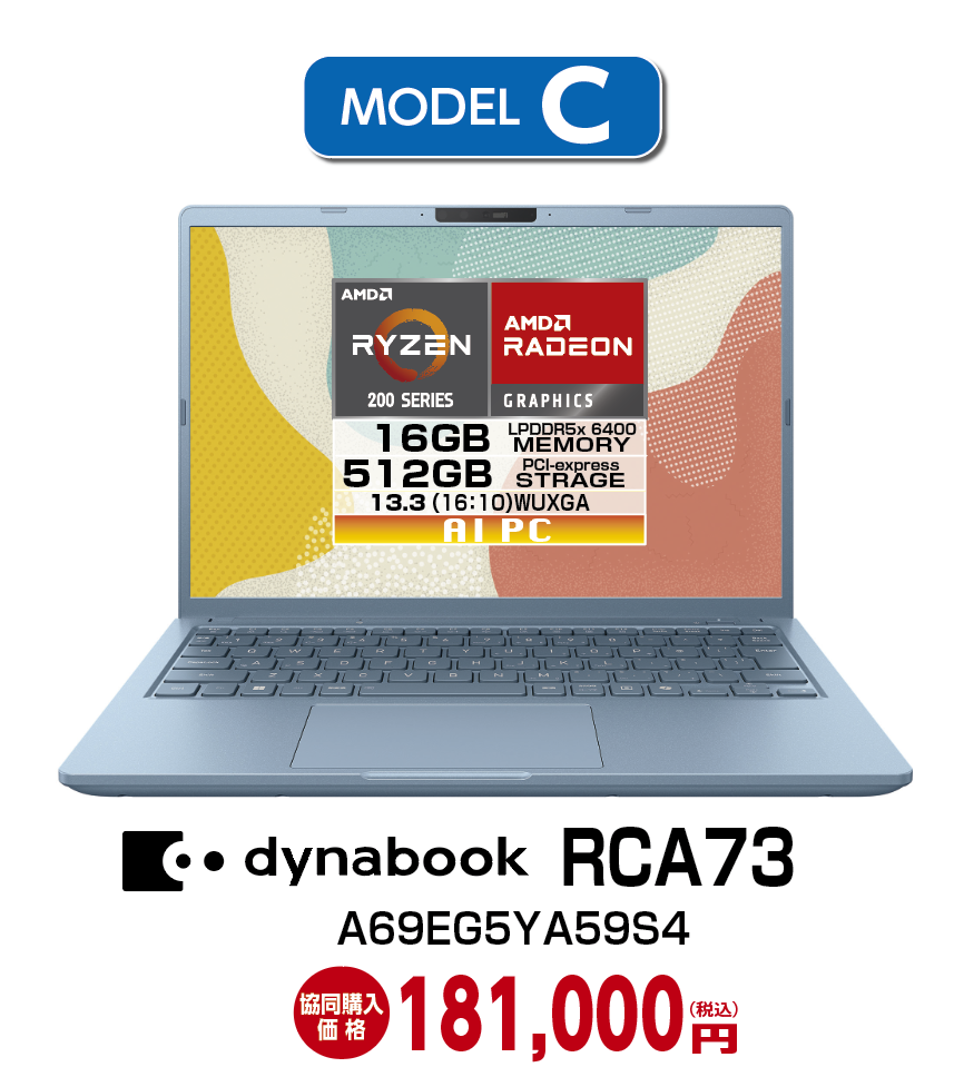 また、dynabook社から同じカラー、同じサイズのカタログモデル(Dynabook G)が出ていて、量販店などに並びますが、AMD Ryzen搭載モデルは大学生協専用モデルで、他では購入出来ない仕様となっています。