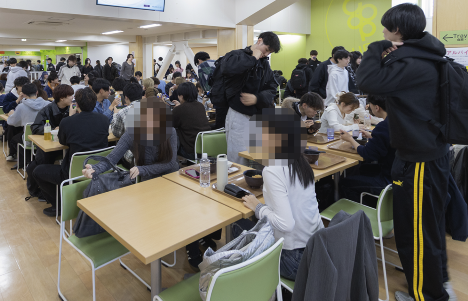 でも、慣れない新入生が荷物とメニュートレーを持って座れる席を探しさまようような混雑時間帯にはやめてほしいと思います。