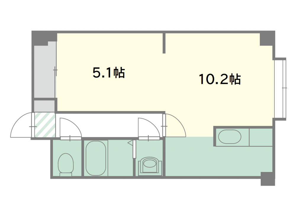 | 間取り:1LDK(10.2+6)(9.5+4.6)1DK(7.5+5.7) | |