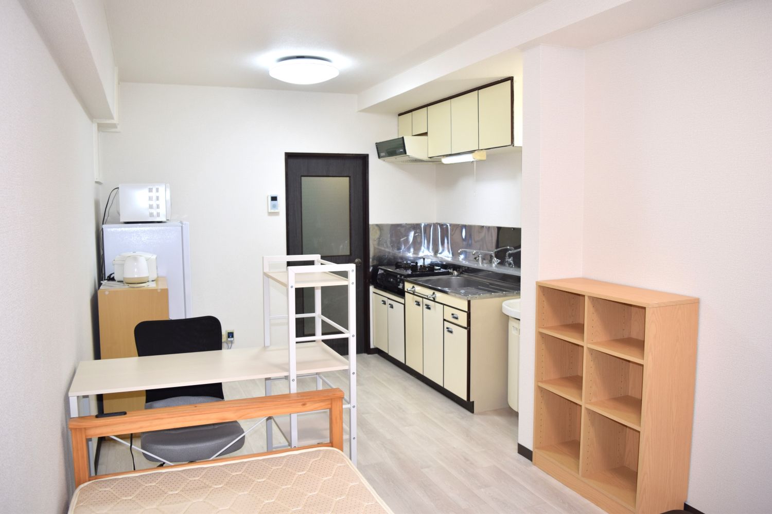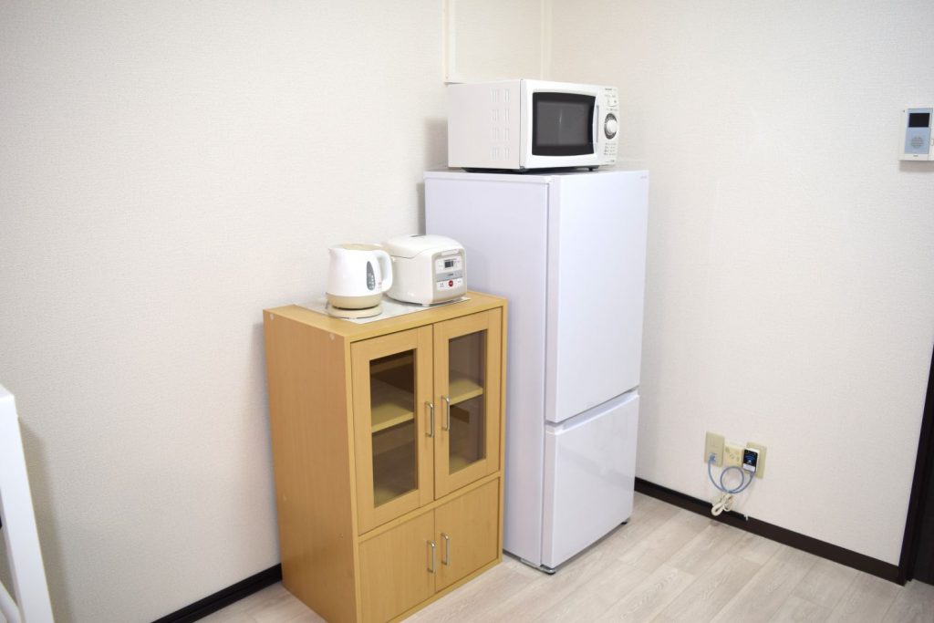 • ●家電家具付き(冷蔵庫・洗濯機・電子レンジ・炊飯器・電子ケトル・2口ガスコンロ・照明・ベッド・机・椅子・食器棚・テレビなど)