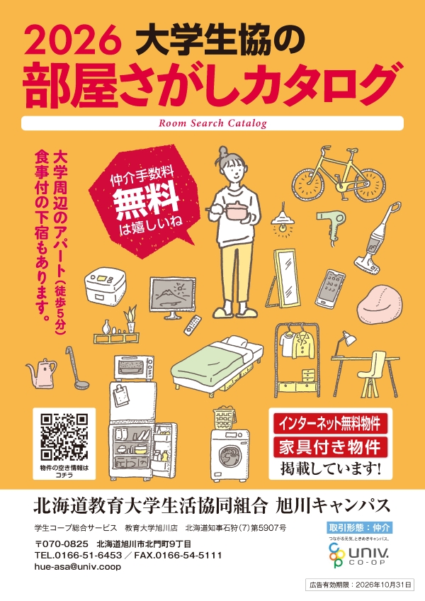 新入生のお部屋探しは教育大旭川キャンパス内にある生協で承っています。