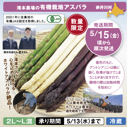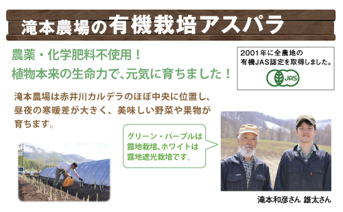 赤井川産滝本農場の有機栽培アスパラ3色セット