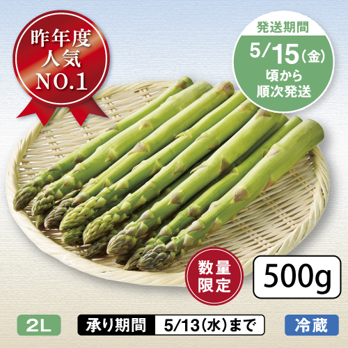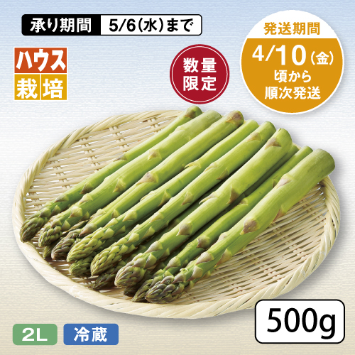 ハウスアスパラは4月上旬頃より、露地アスパラは5月中旬頃より受付順に発送いたします。