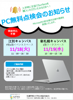 11月19日(水)新札幌キャンパス 10:00-15:30
